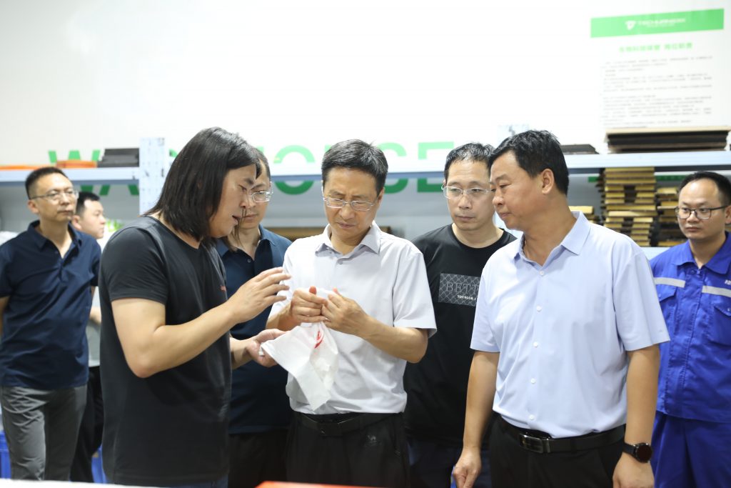 隨后,郜善軍一行又來到了河南特創現代化生產車間,近距離參觀了可降解制品的生產流程,并對公司高效的生產流程與嚴格的管理體系表示贊賞。郜善軍表示,在全省禁塑政策推動下,河南特創應把握機遇,提升產能,優化產品,為禁塑工作提供有力支持。
