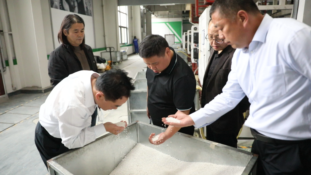 考察團一行首先參觀了河南特創生物的產品展廳。在這里,他們詳細了解了公司主打產品的性能特點、應用領域以及市場反饋情況。展廳內琳瑯滿目的可降解制品讓考察團對公司產品的多元化和先進性有了直觀的認識。